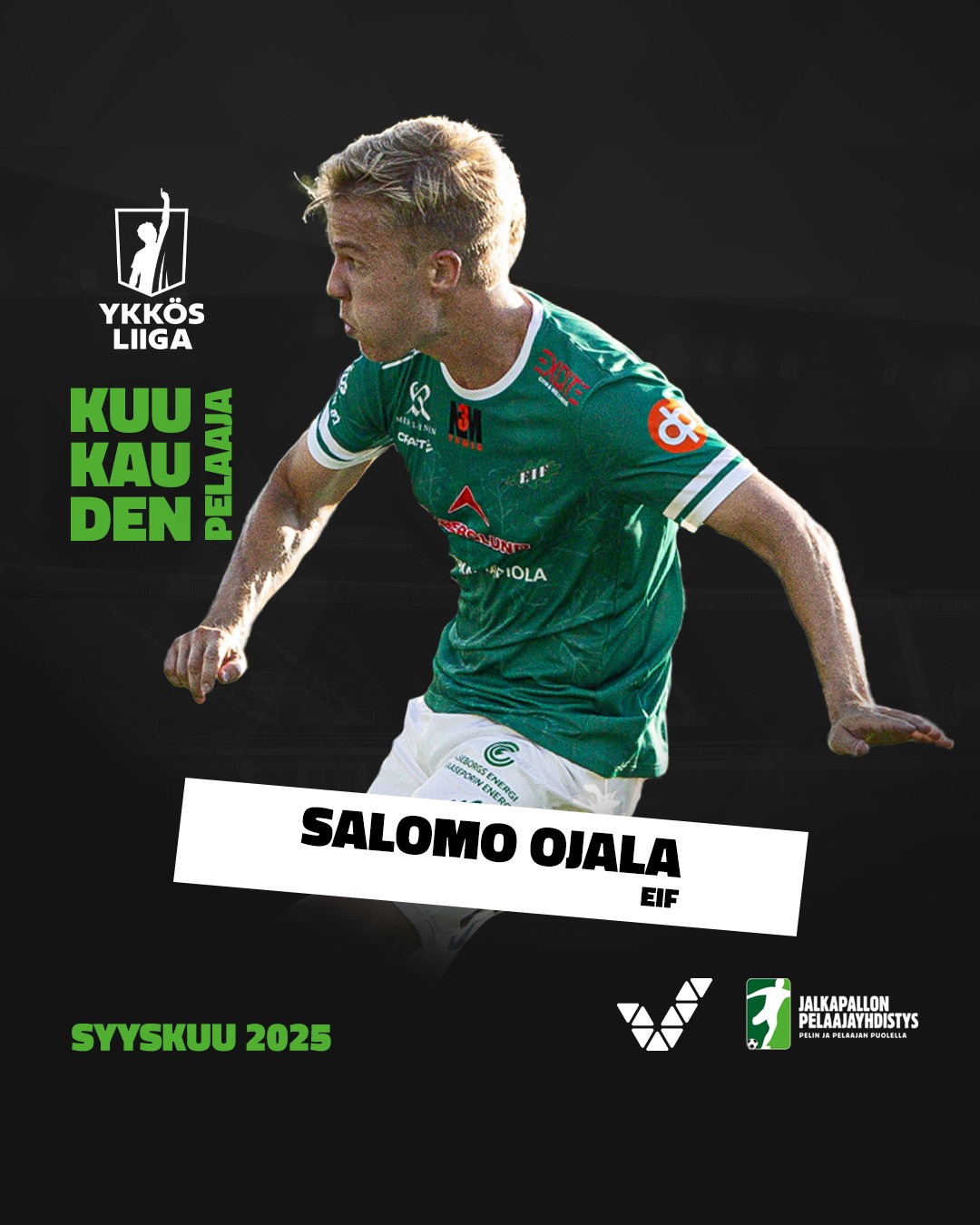 Pelaajat ovat äänestäneet EIF:n Salomo Ojalan Ykkösliigan syyskuun kuukauden pelaajaksi.