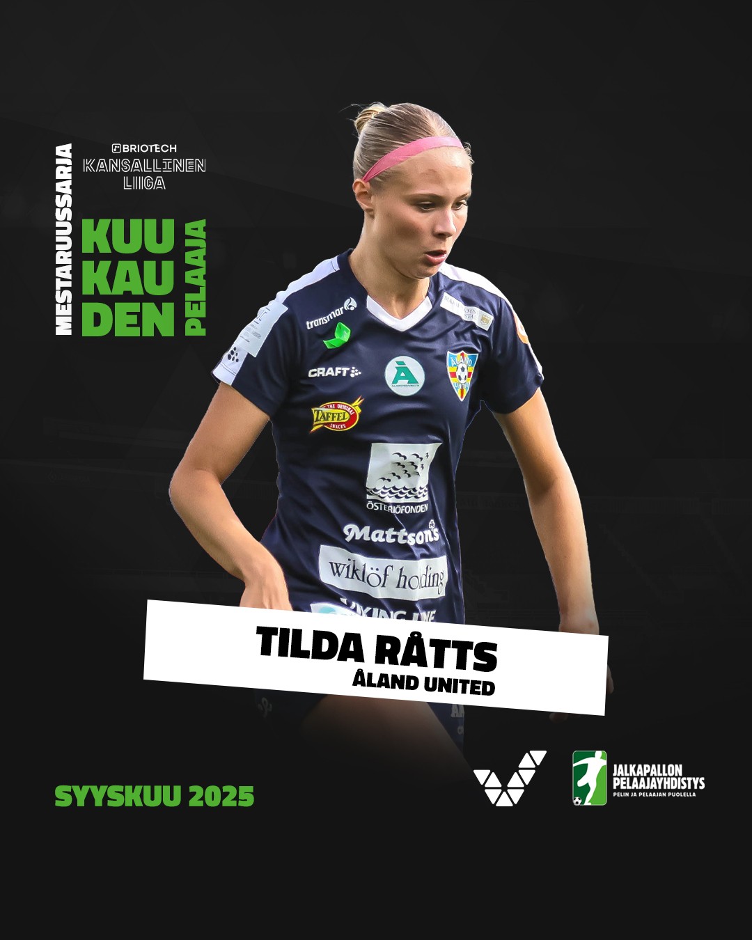 Åland Unitedin Tilda Råtts on äänestetty pelaajien toimesta Kansallisen Liigan syyskuun pelaajaksi.